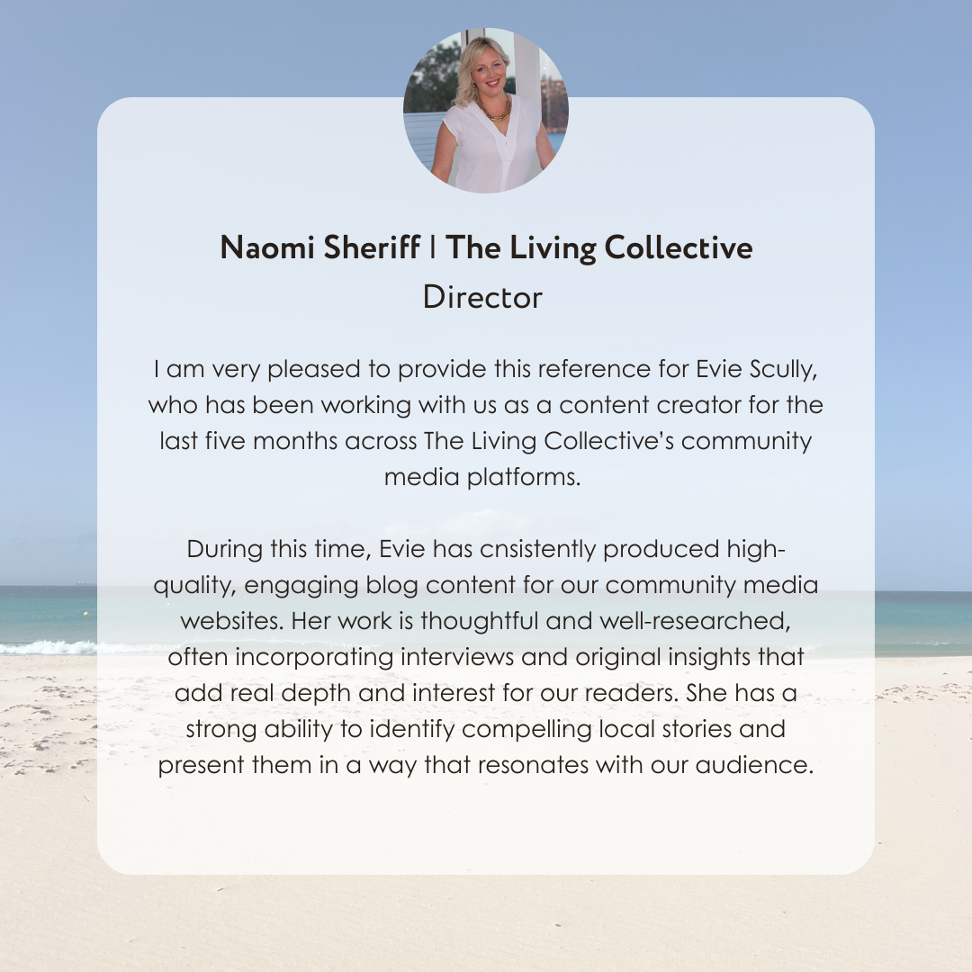 I am currently working with The Living Collective and truly loving it. Being immersed in my own community, capturing beautiful local stories, and spending time out and about with a camera in hand has been such a rewarding experience. Working alongside Naomi and Bianca has also been incredibly inspiring. It has been an awesome learning experience and a space where I feel creatively supported while continuing to grow as a creative specialist.
